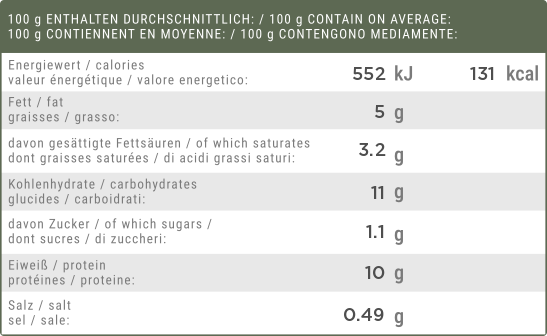Kann Spuren von Gluten, Milch, Ei, Sellerie und Senf enthalten.